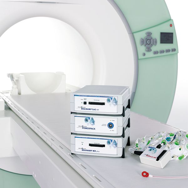 Furthermore, the BrainAmp MR can be combined with the BrainAmp ExG MR to add the capability to record bipolar and peripheral signals (e.g. EOG, ECG, EMG, GSR - Galvanic Skin Response, etc.) in an extremely compact setup.