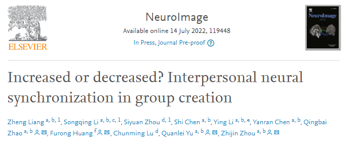 參考文獻(xiàn):Zheng Liang, Songqing Li, Siyuan Zhou, Shi Chen, Ying Li, Yanran Chen, Qingbai Zhao, Furong Huang, Chunming Lu, Quanlei Yu, Zhijin Zhou,Increased or decreased? Interpersonal neural synchronization in group creation,NeuroImage,2022,119448,ISSN 1053-8119,https://doi.org/10.1016/j.neuroimage.2022.119448.