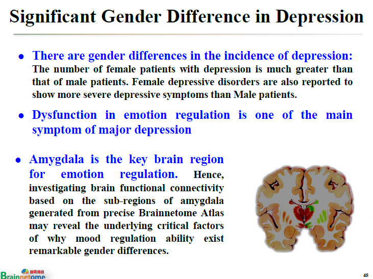 第二,與抑郁癥有關(guān)。我們發(fā)現(xiàn)男女在調(diào)節(jié)情緒方面使用的是完全不同的網(wǎng)絡(luò)。