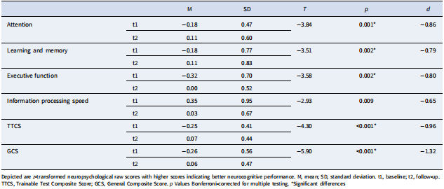將所有測試的原始分?jǐn)?shù)轉(zhuǎn)化為z分?jǐn)?shù),z分?jǐn)?shù)越高表明認(rèn)知表現(xiàn)越好。并對領(lǐng)域得分取平均值,形成神經(jīng)認(rèn)知綜合得分。同時,計算可訓(xùn)練測試綜合分?jǐn)?shù)(TTCS:WAFA, WAFS, WAFG,Nback, ToL, Go-Nogo得分的平均值)和綜合評分(GCS:計算注意力均值、學(xué)習(xí)記憶均值、執(zhí)行功能均值、信息處理速度均值)。