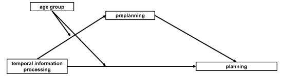 據(jù)此,本研究假設(shè)預(yù)先計(jì)劃(用ITT測(cè)量)在時(shí)間信息處理(TIP)和計(jì)劃中起中介作用,且年齡在時(shí)間信息處理和計(jì)劃、預(yù)先計(jì)劃之間起調(diào)節(jié)作用(圖1)。