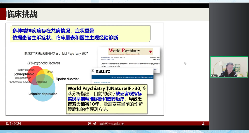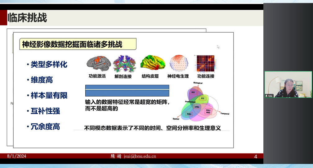 2024年8月1日晚20點,北京師范大學認知神經(jīng)科學與學習國家重點實驗室課題組長隋婧教授作為腦客中國科研第153位講者為大家?guī)碇黝}為《多模態(tài)磁共振影像融合計算方法及其在神經(jīng)精神疾病的臨床應用》的報告。以下內容節(jié)選自直播視頻: