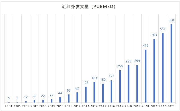 近年來,近紅外腦功能成像(fNIRS)技術(shù)因其非侵入性、便攜性以及對腦部活動監(jiān)測的高靈敏度而備受關(guān)注,fNIRS相關(guān)的研究論文發(fā)表數(shù)量逐年增加。特別是在高影響力期刊中,如《NeuroImage》、《Frontiers in Human Neuroscience》和《Journal of Biomedical Optics》,相關(guān)文章涵蓋了技術(shù)改進(jìn)、應(yīng)用拓展以及多模態(tài)成像技術(shù)的創(chuàng)新等話題。NIRS技術(shù)在設(shè)備、應(yīng)用領(lǐng)域及文獻(xiàn)發(fā)表上都呈現(xiàn)出穩(wěn)步上升的趨勢,并逐步成為神經(jīng)科學(xué)研究中的核心工具之一。