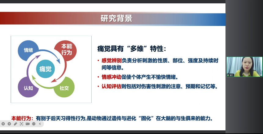 另外我們現在的一些工作也發現在慢性疼痛患者里,他的學習記憶能力是下降的;也有一部分工作圍繞痛覺的影響社交來開展,發現在慢性疼痛的狀態下,小鼠的社交能力是受到了顯著抑制。