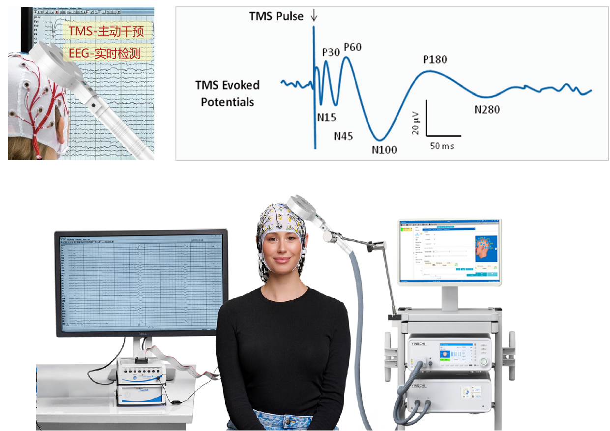 經顱磁刺激同步腦電圖(TMS-EEG)技術是通過TMS非侵入性地激活大腦特定區域,并結合EEG實時記錄大腦的電活動,以評估大腦的功能連接性和神經網絡動態的技術。